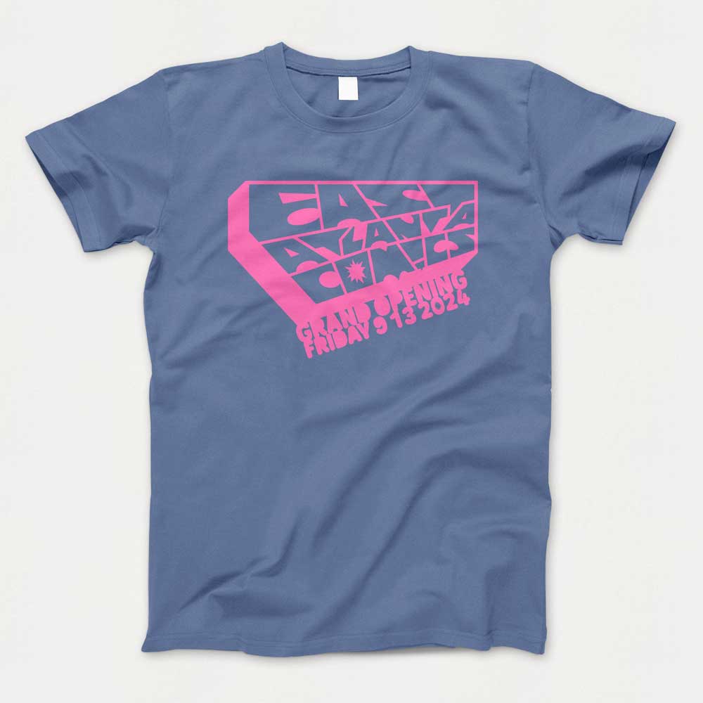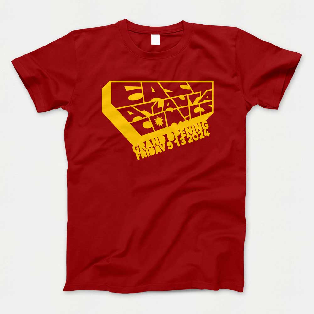Available in four dynamic color combos and printed on a supple 100% combed ringspun cotton fine jersey tee from Next Level Apparel, the lines are crisp and the message is clear: East Atlanta Comics is HERE!